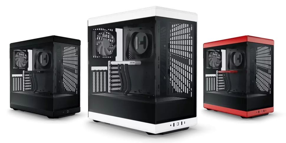 Das Hyte Y40 hat eine ähnliche Ästhetik wie das Y60 und ist in drei Farben mit Glas an der Front und an den Seiten erhältlich. Es ist im Wesentlichen eine kompaktere Version des Y60, mit nur zwei Glasplatten an der Front und an der Seite, anstatt der drei beim Y60. Der Preis wurde ebenfalls gesenkt und liegt nun bei 149$, statt 199$ wie beim Y60. Wie Sie auf dem Bild oben sehen können, ist das Y40 in Weiß, Rot oder Schwarz erhältlich, und das Gehäuse wird mit einem PCIe 4.0 Riser-Kabel für die vertikale GPU-Montage geliefert. Das Unternehmen sagt, dass RTX 4090s unterstützt werden, obwohl das Y40 nur ATX-Motherboards unterstützt, während das Y60 E-ATX unterstützt. Erwarten Sie also nicht, dass Sie ein großes Motherboard in das Y40 einbauen können.